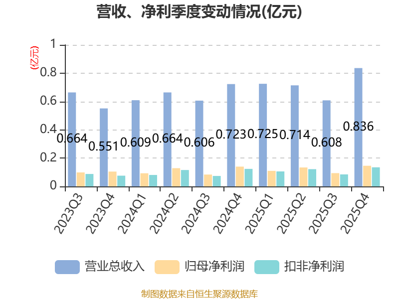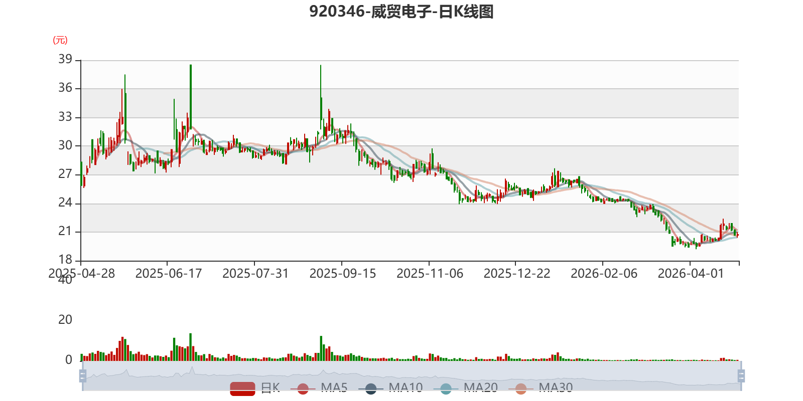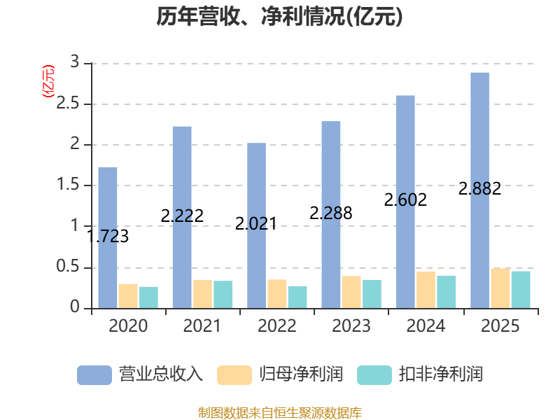 中证智能财讯威贸电子(920346)4月27日披露2025年年度报告。2025年,公司实现营业总收入2.88亿元,同比增长10.79%;归母净利润4846.99万元,同比增长8.73%;扣非净利润4488.24万元,同比增长13.55%;经营活动产生的现金流量净额为5049.58万元,同比下降15.07%;报告期内,威贸电子基本每股收益为0.6元,加权平均净资产收益率为10.58%。公司2025年度分配预案为:拟向全体股东每10股派现3.4元(含税)。