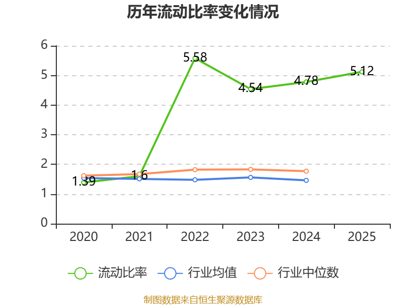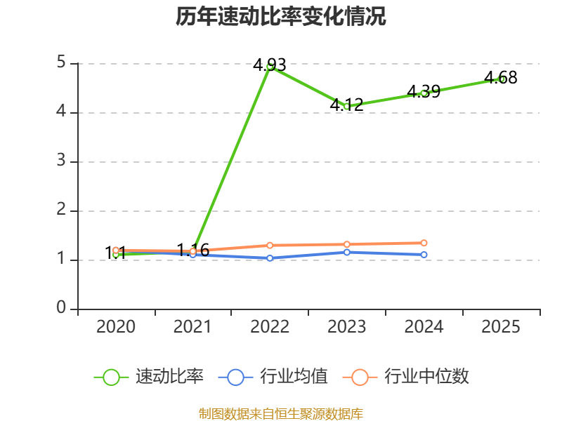 2025年,公司流动比率为5.12,速动比率为4.68。