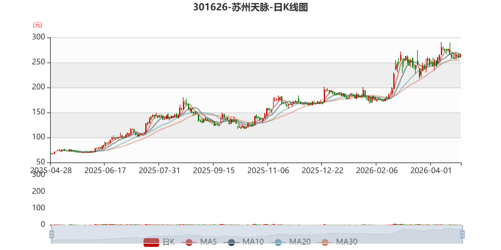 以4月27日收盘价计算,苏州天脉目前市盈率(TTM)约为199.55倍,市净率(LF)约19.37倍,市销率(TTM)约27.63倍。