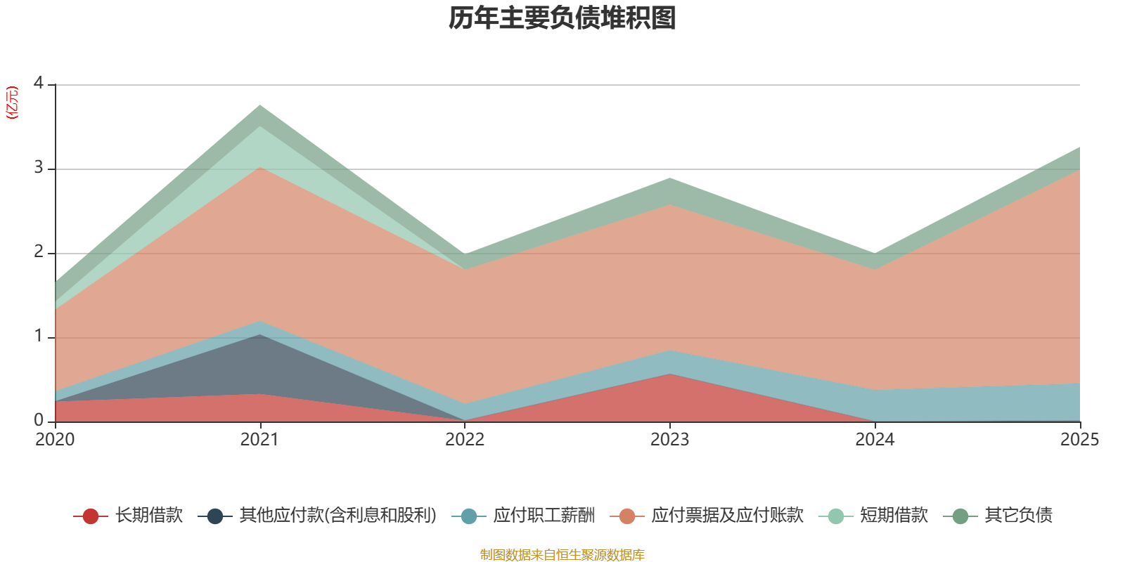 负债重大变化方面,截至2025年末,公司应付票据及应付账款较上年末增加78.02%,占公司总资产比重上升4.77个百分点;长期递延收益较上年末增加584.1%,占公司总资产比重上升0.47个百分点;其他流动负债较上年末减少28.68%,占公司总资产比重下降0.15个百分点;应交税费较上年末减少16.33%,占公司总资产比重下降0.1个百分点。