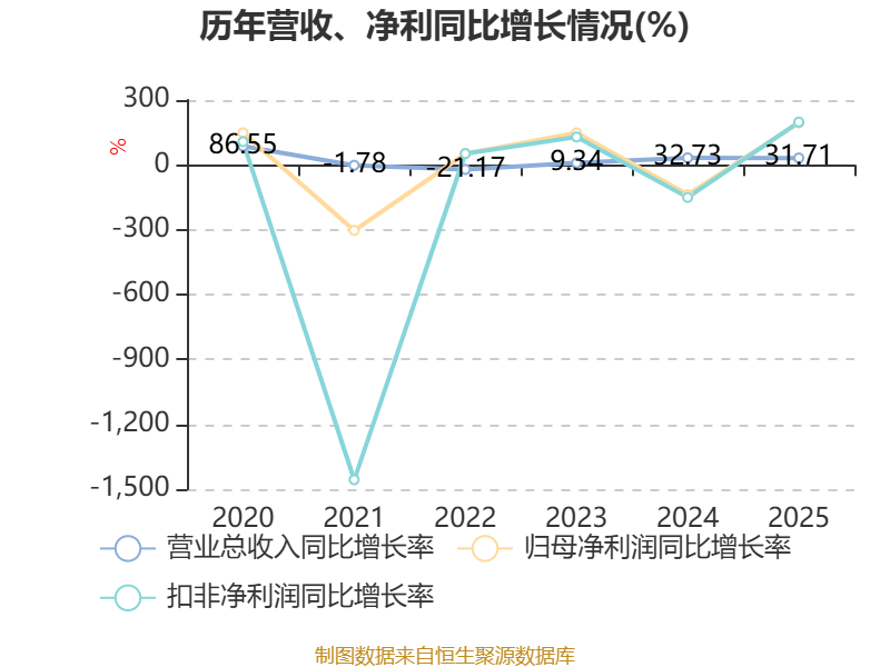 资产重大变化方面,截至2025年末,公司应收票据及应收账款较上年末增加43.18%,占公司总资产比重上升9.41个百分点;货币资金较上年末减少17.94%,占公司总资产比重下降5.86个百分点;预付款项较上年末增加10.6%,占公司总资产比重下降1.26个百分点;其他流动资产较上年末减少13.33%,占公司总资产比重下降1.05个百分点。