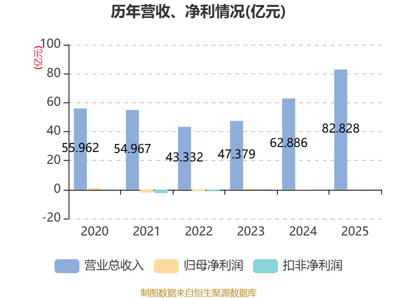 中证智能财讯引力传媒(603598)4月28日披露2025年年度报告。2025年,公司实现营业总收入82.83亿元,同比增长31.71%;归母净利润1712.49万元,同比扭亏;扣非净利润1692.33万元,同比扭亏;经营活动产生的现金流量净额为1880.42万元,上年同期为-2.92亿元;报告期内,引力传媒基本每股收益为0.06元,加权平均净资产收益率为8.82%。