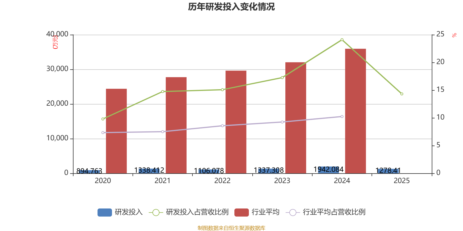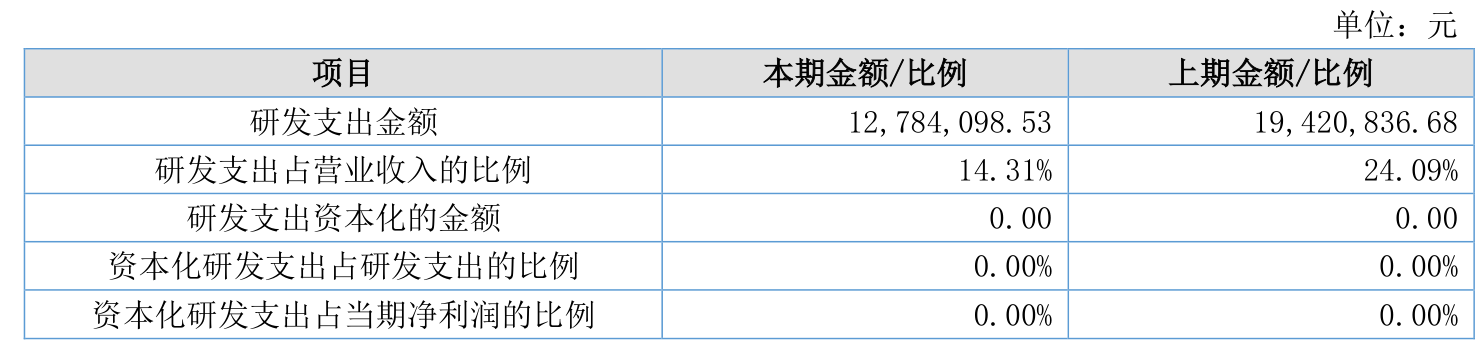 2025年全年,公司研发投入金额为1278.41万元,同比下降34.17%;研发投入占营业收入比例为14.31%,相比上年同期下降9.78个百分点。此外,公司全年研发投入资本化率为0%。