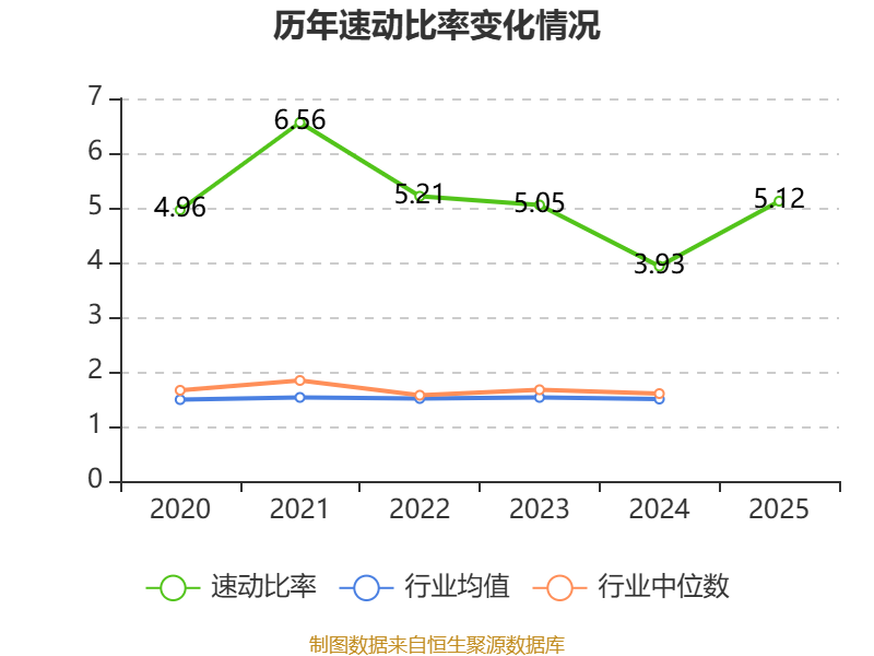 2025年,公司流动比率为5.57,速动比率为5.12。