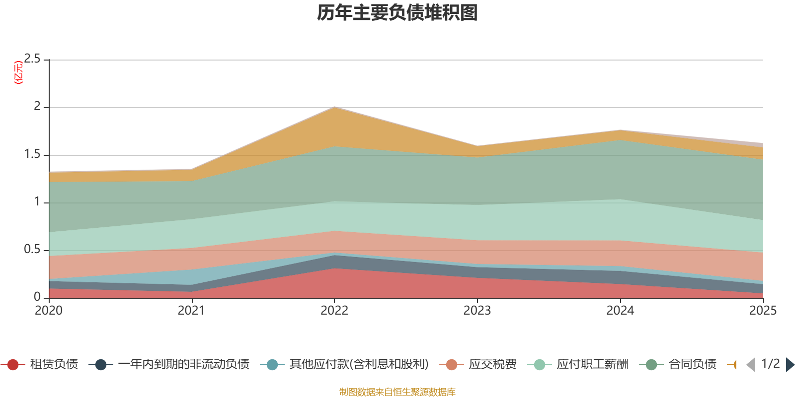 负债重大变化方面,截至2025年末,公司租赁负债较上年末减少68.31%,占公司总资产比重下降1.14个百分点;应付职工薪酬较上年末减少21.3%,占公司总资产比重下降1.03个百分点;一年内到期的非流动负债较上年末减少30.29%,占公司总资产比重下降0.48个百分点;应交税费较上年末增加10.21%,占公司总资产比重上升0.36个百分点。