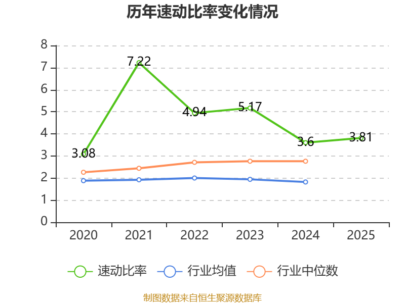 2025年,公司流动比率为4.28,速动比率为3.81。