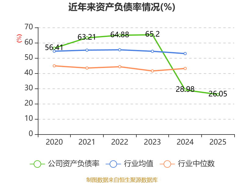 资产重大变化方面,截至2025年末,公司货币资金较上年末增加31.9%,占公司总资产比重上升6.36个百分点;其他非流动资产较上年末减少30.84%,占公司总资产比重下降2.66个百分点;应收票据及应收账款较上年末减少14.52%,占公司总资产比重下降2.65个百分点;存货较上年末减少13.02%,占公司总资产比重下降1.89个百分点。