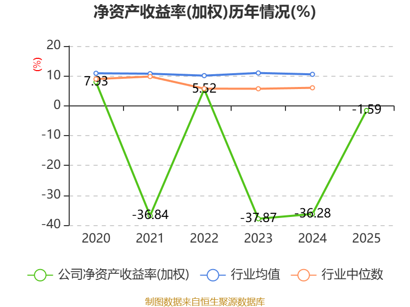 数据显示,2025年公司加权平均净资产收益率为-1.59%,较上年同期上升34.69个百分点。公司2025年投入资本回报率为-0.45%,较上年同期上升18.32个百分点。