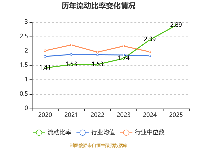 2025年,公司流动比率为2.89,速动比率为2.05。