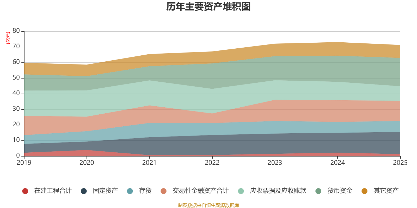 资产重大变化方面,截至2025年末,公司应收票据及应收账款较上年末减少21.89%,占公司总资产比重下降3.24个百分点;货币资金较上年末增加8.67%,占公司总资产比重上升2.63个百分点;固定资产较上年末增加11.67%,占公司总资产比重上升2.53个百分点;在建工程合计较上年末减少44.77%,占公司总资产比重下降1.28个百分点。