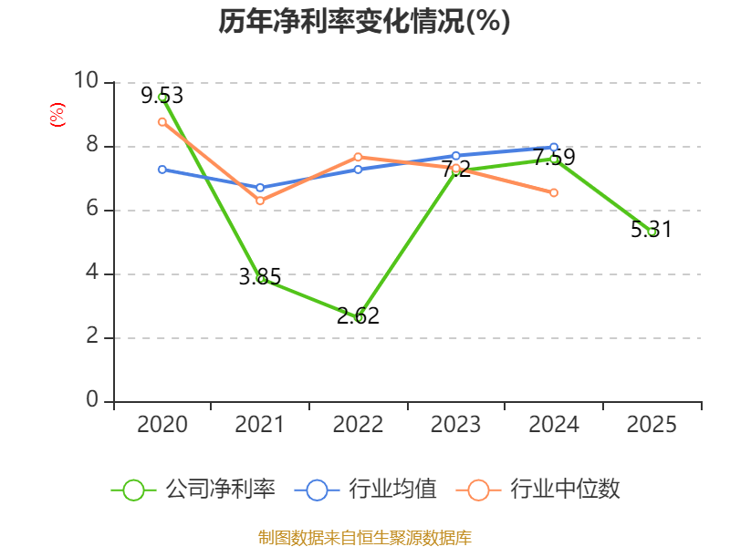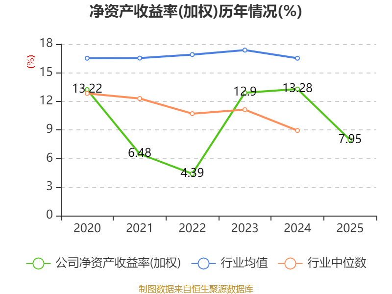 数据显示,2025年公司加权平均净资产收益率为7.95%,较上年同期下降5.33个百分点。公司2025年投入资本回报率为7.51%,较上年同期下降4.87个百分点。