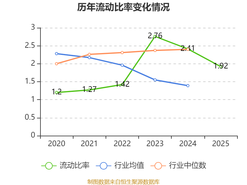 2025年,公司流动比率为1.92,速动比率为1.44。