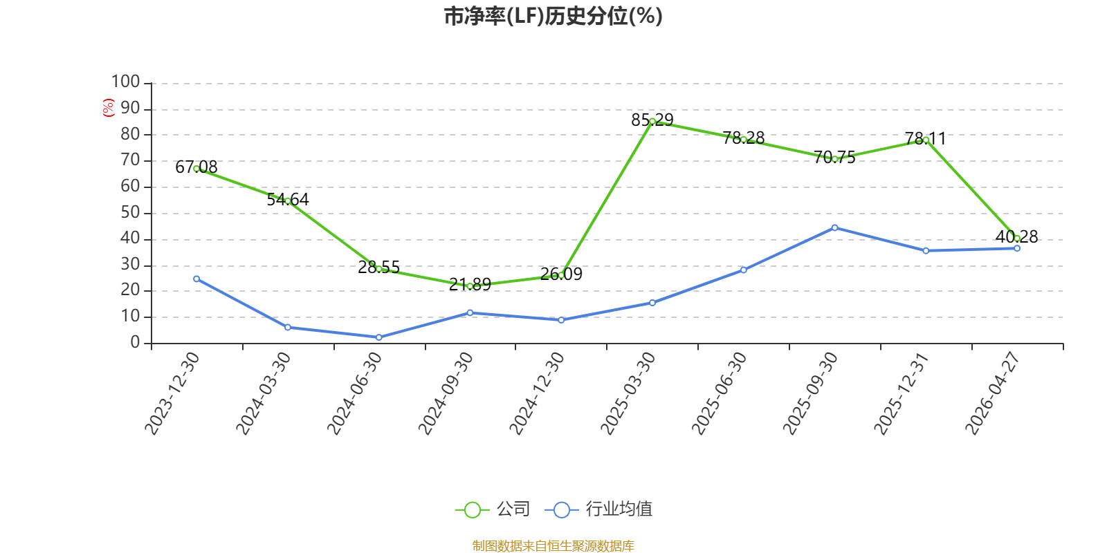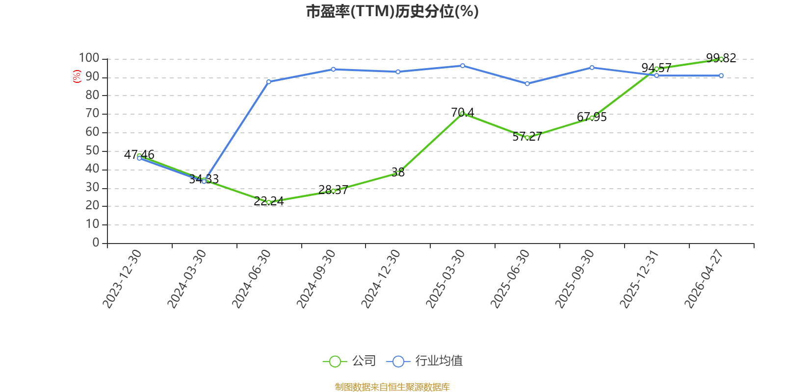 市盈率、市净率为负时,不显示当期分位数,会导致折线图中断。