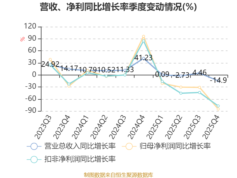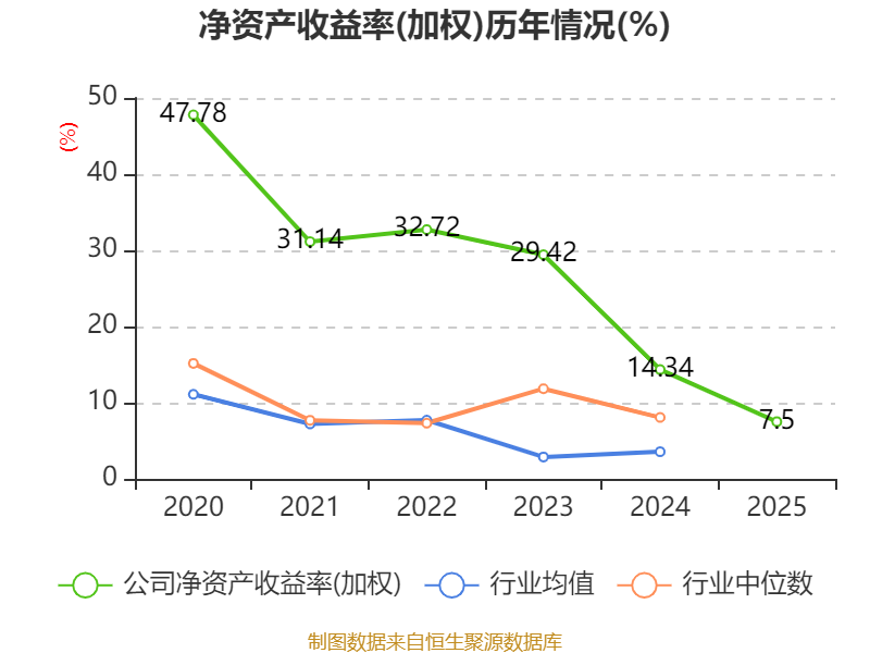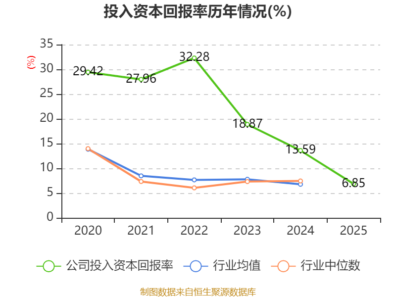 数据显示,2025年公司加权平均净资产收益率为7.5%,较上年同期下降6.84个百分点。公司2025年投入资本回报率为6.85%,较上年同期下降6.74个百分点。