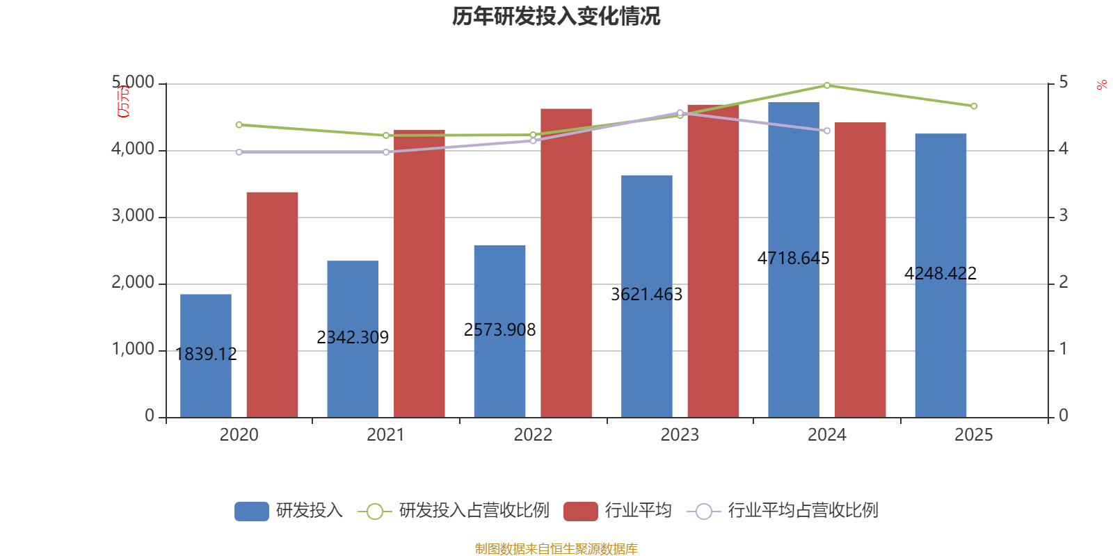 2025年全年,公司研发投入金额为4248.42万元,同比下降9.97%;研发投入占营业收入比例为4.66%,相比上年同期下降0.31个百分点。此外,公司全年研发投入资本化率为0%。