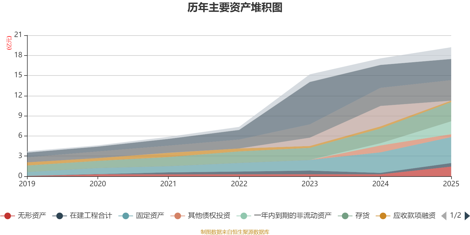 资产重大变化方面,截至2025年末,公司交易性金融资产合计较上年末减少100%,占公司总资产比重下降17.42个百分点;一年内到期的非流动资产较上年末增加494.31%,占公司总资产比重上升8.17个百分点;无形资产较上年末增加405.36%,占公司总资产比重上升5.84个百分点;其他债权投资较上年末减少59.42%,占公司总资产比重下降3.71个百分点。