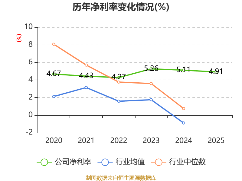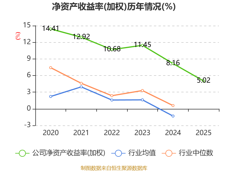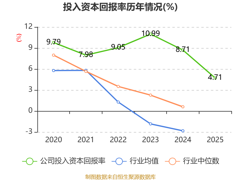 数据显示,2025年公司加权平均净资产收益率为5.02%,较上年同期下降3.14个百分点。公司2025年投入资本回报率为4.71%,较上年同期下降4个百分点。