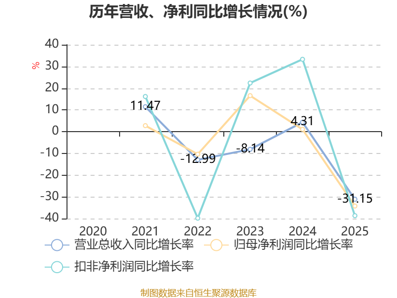 资产重大变化方面,截至2025年末,公司货币资金较上年末增加61.4%,占公司总资产比重上升8.65个百分点;应收票据及应收账款较上年末增加6.28%,占公司总资产比重下降5.16个百分点;交易性金融资产合计较上年末减少100%,占公司总资产比重下降2.77个百分点;存货较上年末增加40.84%,占公司总资产比重上升1.63个百分点。