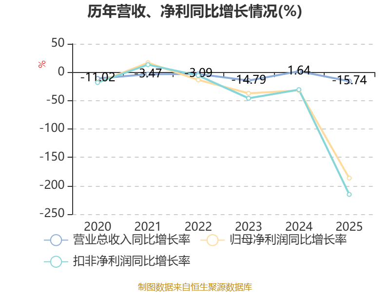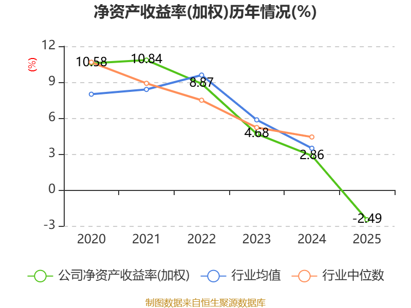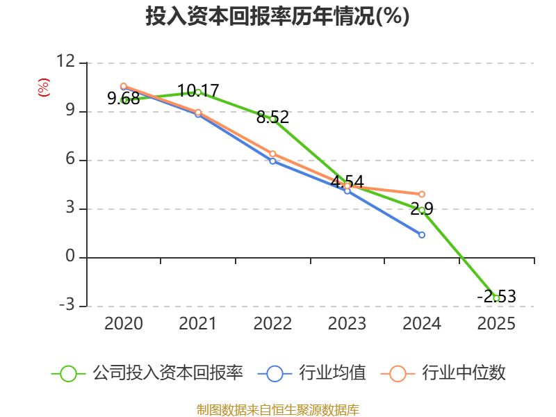 数据显示,2025年公司加权平均净资产收益率为-2.49%,较上年同期下降5.35个百分点。公司2025年投入资本回报率为-2.53%,较上年同期下降5.43个百分点。