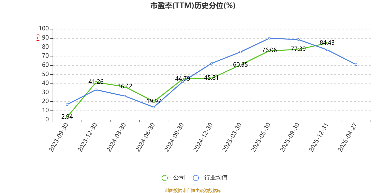 市盈率、市净率为负时,不显示当期分位数,会导致折线图中断。