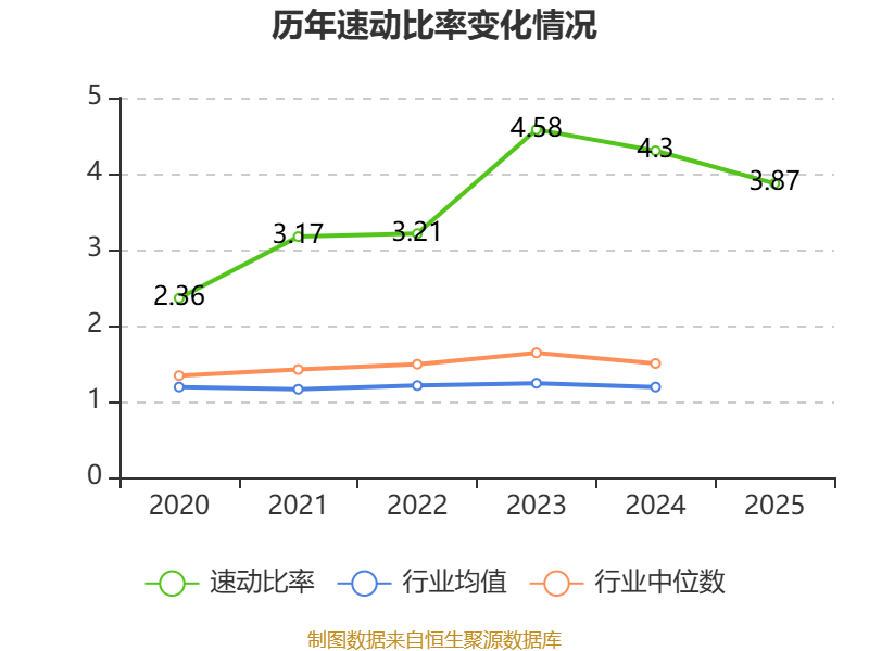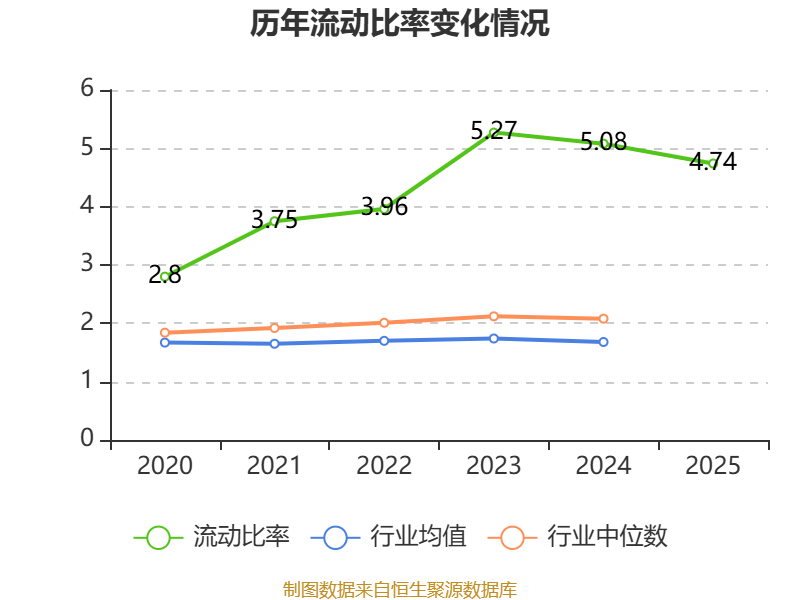 2025年,公司流动比率为4.74,速动比率为3.87。
