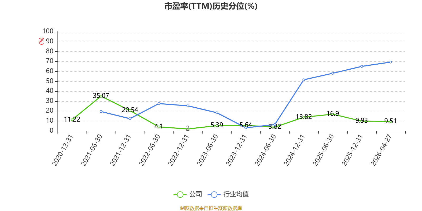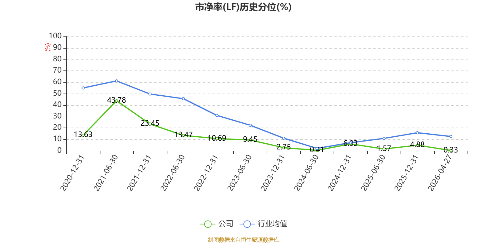 市盈率、市净率为负时,不显示当期分位数,会导致折线图中断。