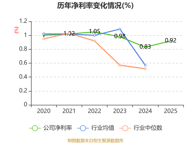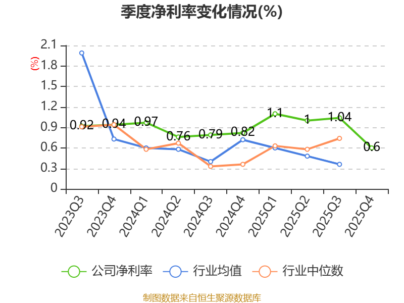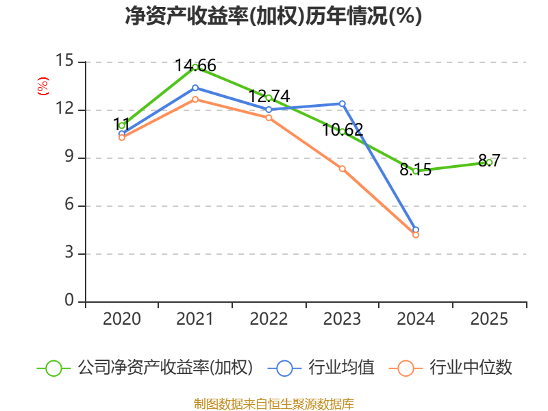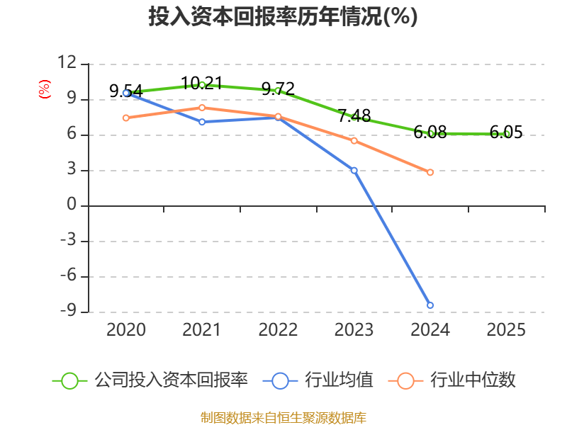 数据显示,2025年公司加权平均净资产收益率为8.7%,较上年同期上升0.55个百分点。公司2025年投入资本回报率为6.05%,较上年同期下降0.03个百分点。