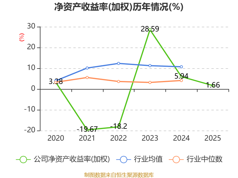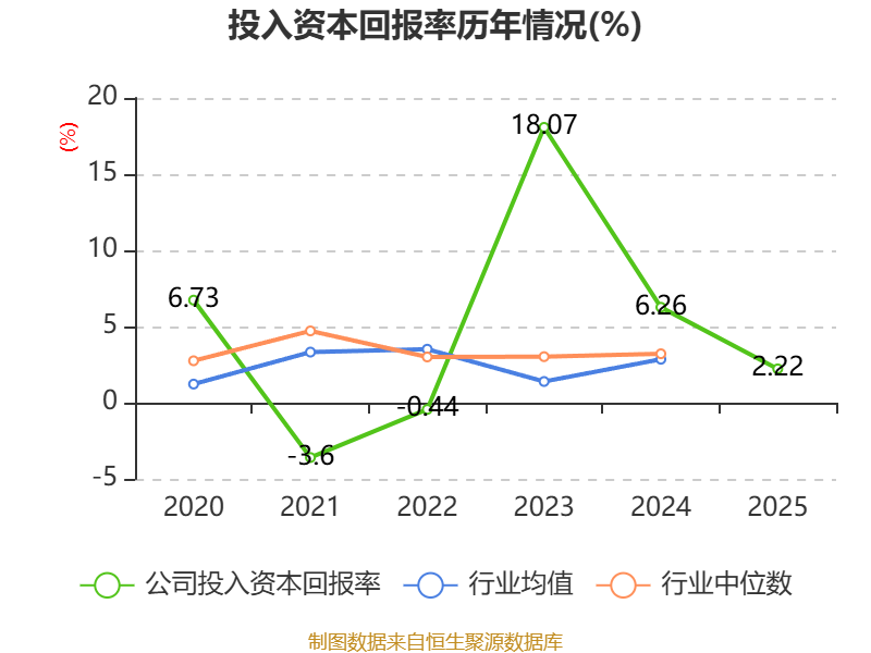 数据显示,2025年公司加权平均净资产收益率为1.66%,较上年同期下降4.28个百分点。公司2025年投入资本回报率为2.22%,较上年同期下降4.04个百分点。