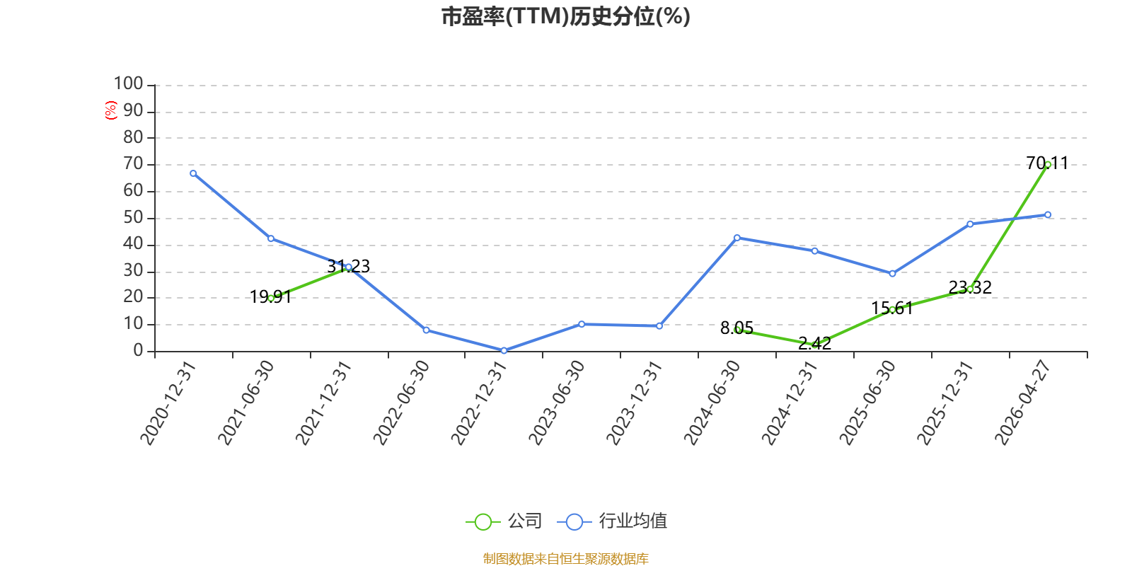 市盈率、市净率为负时,不显示当期分位数,会导致折线图中断。