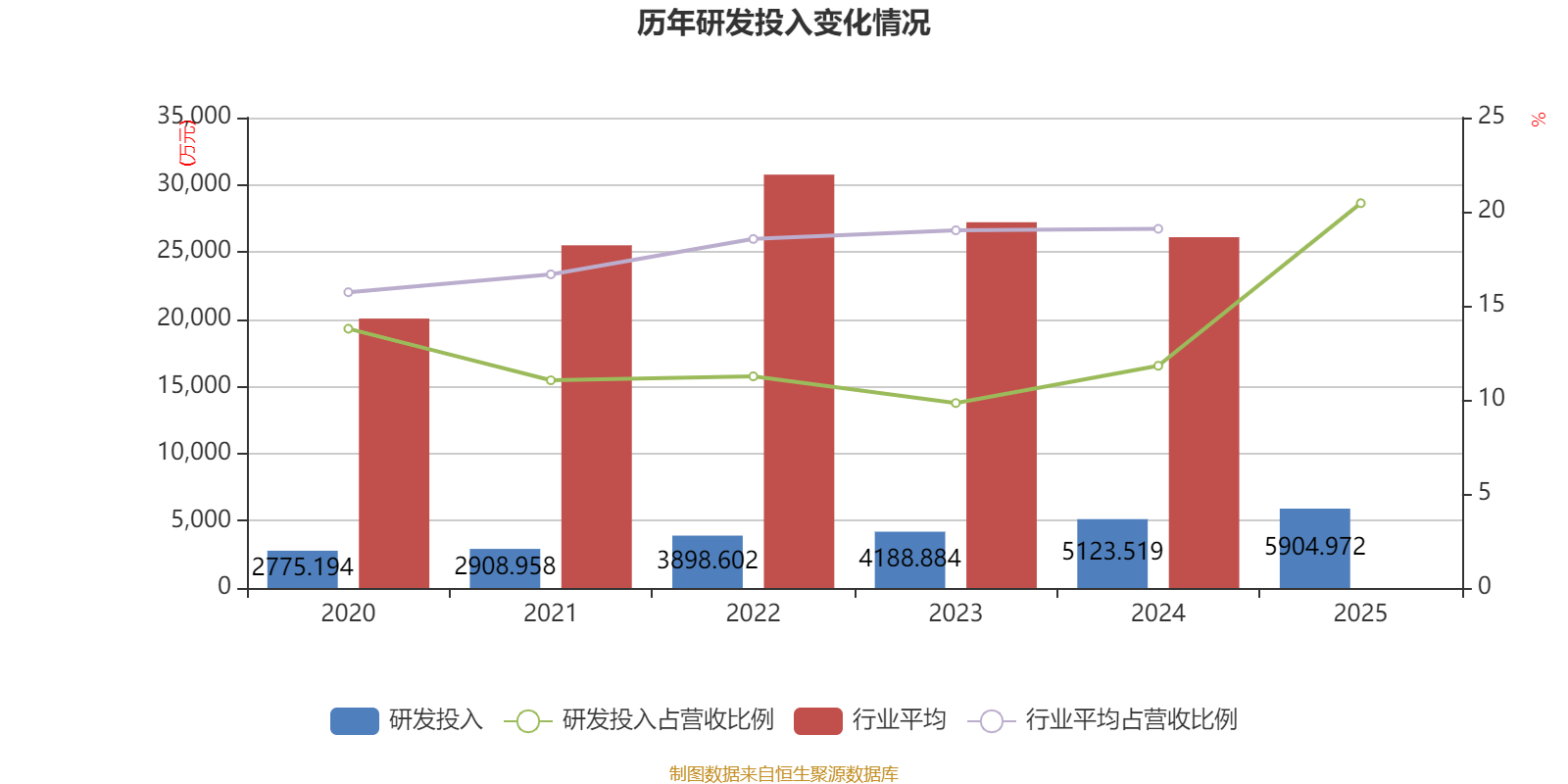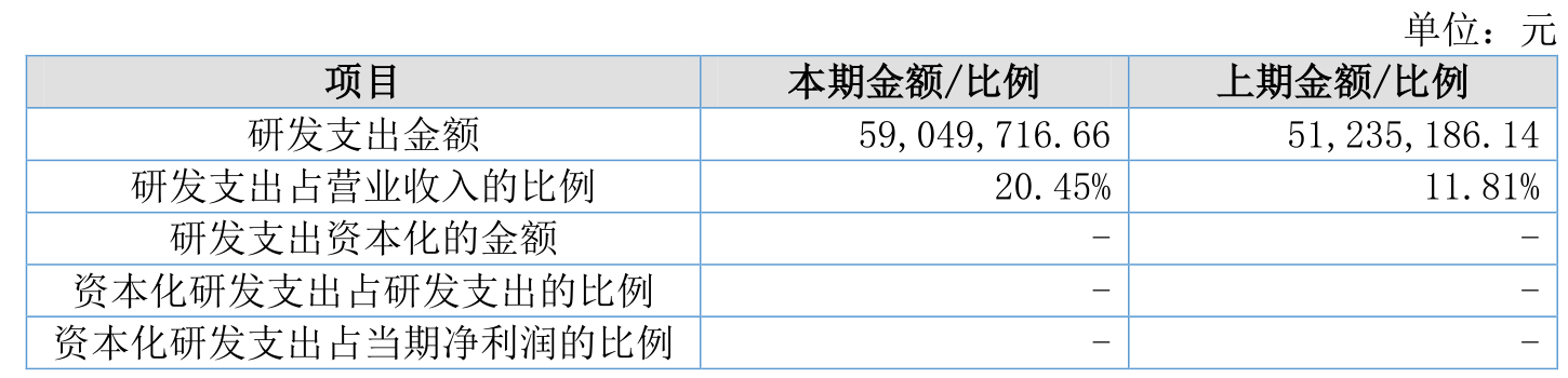2025年全年,公司研发投入金额为5904.97万元,同比增长15.25%;研发投入占营业收入比例为20.45%,相比上年同期上升8.64个百分点。
