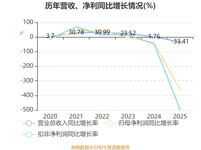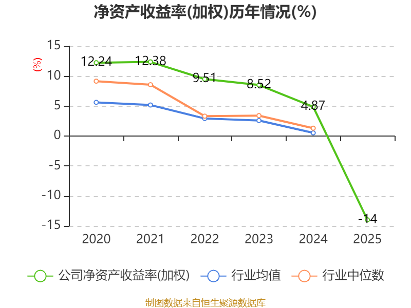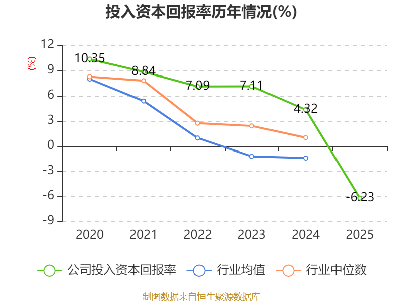 数据显示,2025年公司加权平均净资产收益率为-14%,较上年同期下降18.87个百分点。公司2025年投入资本回报率为-6.23%,较上年同期下降10.55个百分点。