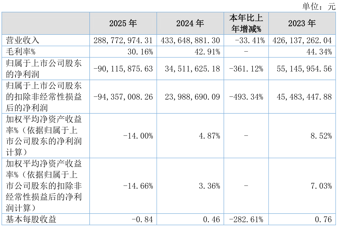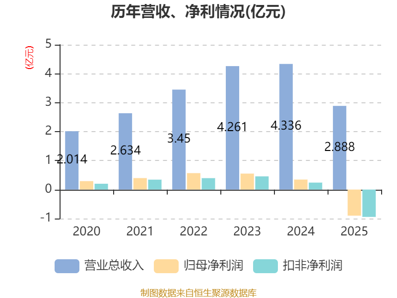 中证智能财讯科达自控(920932)4月27日披露2025年年度报告。2025年,公司实现营业总收入2.89亿元,同比下降33.41%;归母净利润亏损9011.59万元,上年同期盈利3451.16万元;扣非净利润亏损9435.7万元,上年同期盈利2398.87万元;经营活动产生的现金流量净额为6034.82万元,同比下降20.42%;报告期内,科达自控基本每股收益为-0.84元,加权平均净资产收益率为-14.00%。