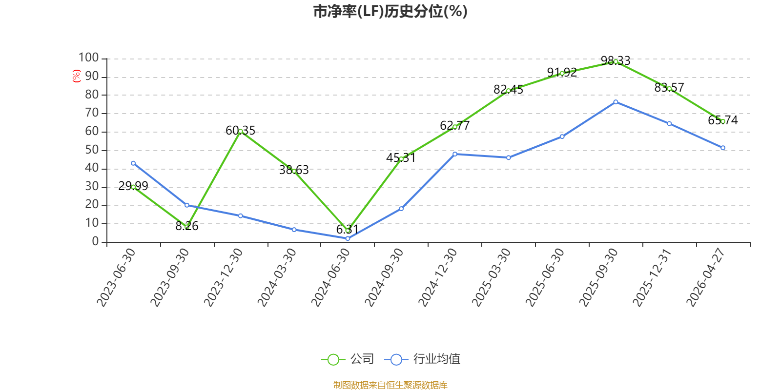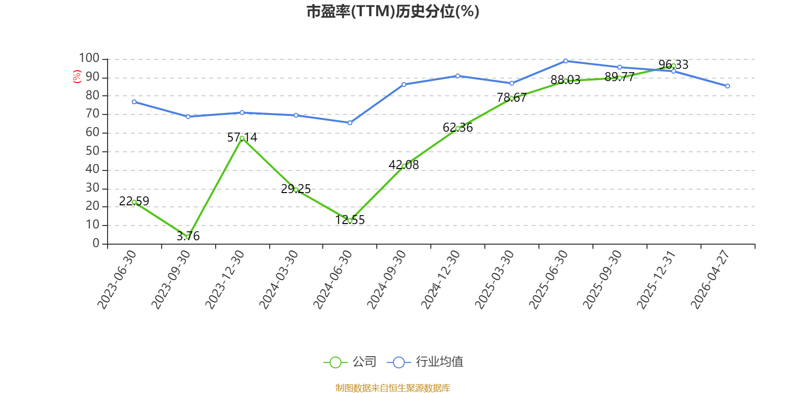 市盈率、市净率为负时,不显示当期分位数,会导致折线图中断。
