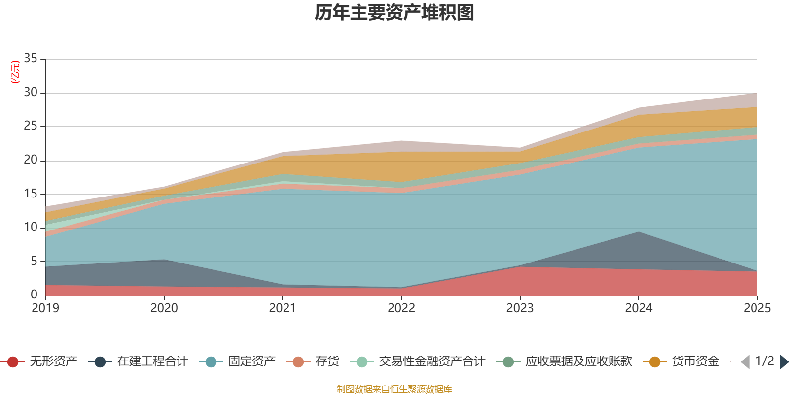 资产重大变化方面,截至2025年末,公司固定资产较上年末增加56.52%,占公司总资产比重上升20.18个百分点;在建工程合计较上年末减少98.2%,占公司总资产比重下降19.75个百分点;其他非流动资产较上年末增加166.63%,占公司总资产比重上升2.12个百分点;无形资产较上年末减少8.14%,占公司总资产比重下降2.07个百分点。