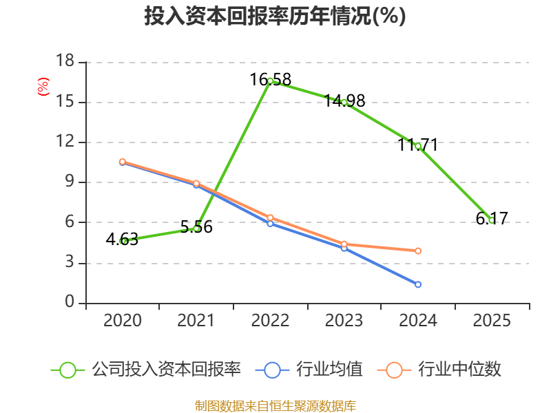 数据显示,2025年公司加权平均净资产收益率为7.1%,较上年同期下降5.69个百分点。公司2025年投入资本回报率为6.17%,较上年同期下降5.54个百分点。