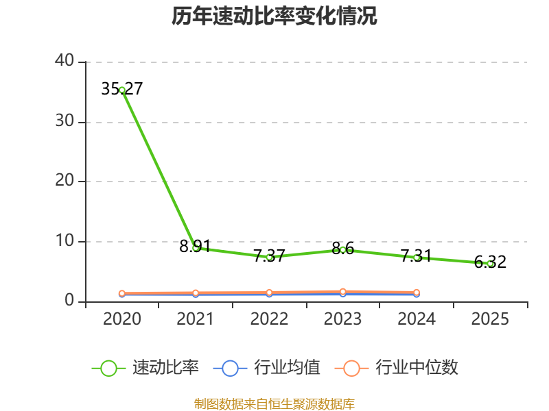 2025年,公司流动比率为7.46,速动比率为6.32。