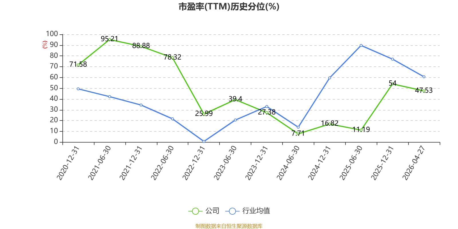 市盈率、市净率为负时,不显示当期分位数,会导致折线图中断。