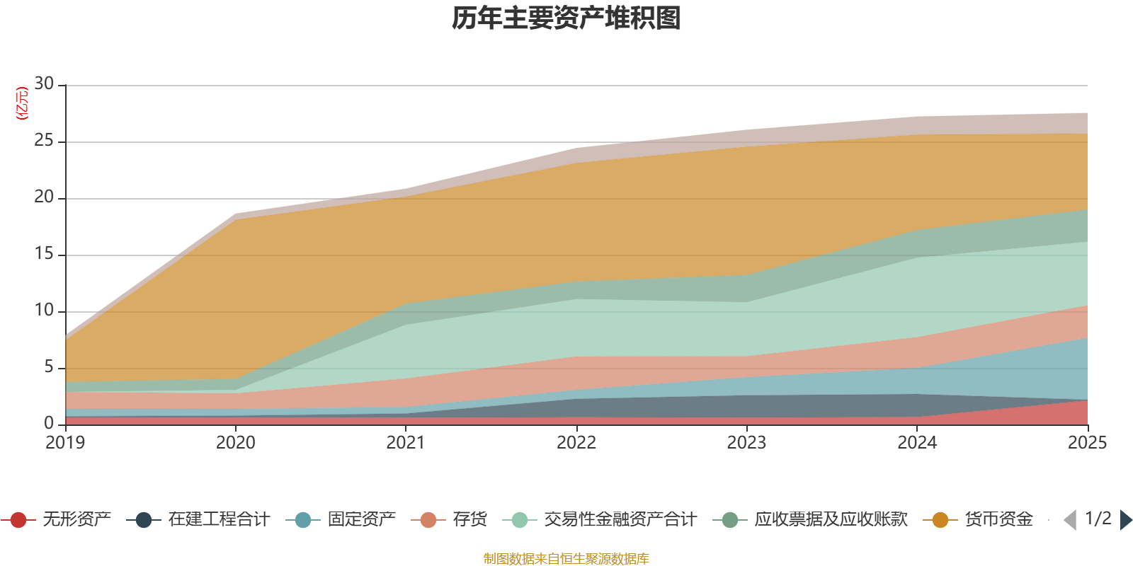 资产重大变化方面,截至2025年末,公司固定资产较上年末增加135.61%,占公司总资产比重上升11.32个百分点;在建工程合计较上年末减少96.55%,占公司总资产比重下降7.19个百分点;货币资金较上年末减少20.46%,占公司总资产比重下降6.62个百分点;交易性金融资产合计较上年末减少20.04%,占公司总资产比重下降5.41个百分点。