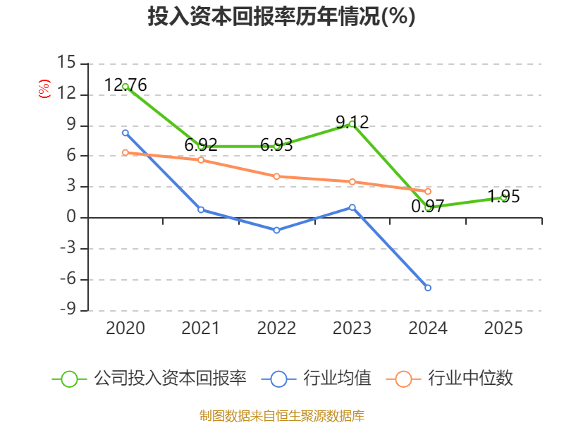 数据显示,2025年公司加权平均净资产收益率为5.06%,较上年同期上升2.15个百分点。公司2025年投入资本回报率为1.95%,较上年同期上升0.98个百分点。
