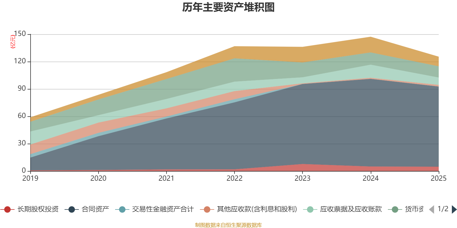 资产重大变化方面,截至2025年末,公司合同资产较上年末减少8.49%,占公司总资产比重上升4.87个百分点;应收票据及应收账款较上年末减少43.71%,占公司总资产比重下降3.32个百分点;划分为持有待售的资产较上年末减少100%,占公司总资产比重下降1.83个百分点;固定资产较上年末减少44.32%,占公司总资产比重下降1.06个百分点。
