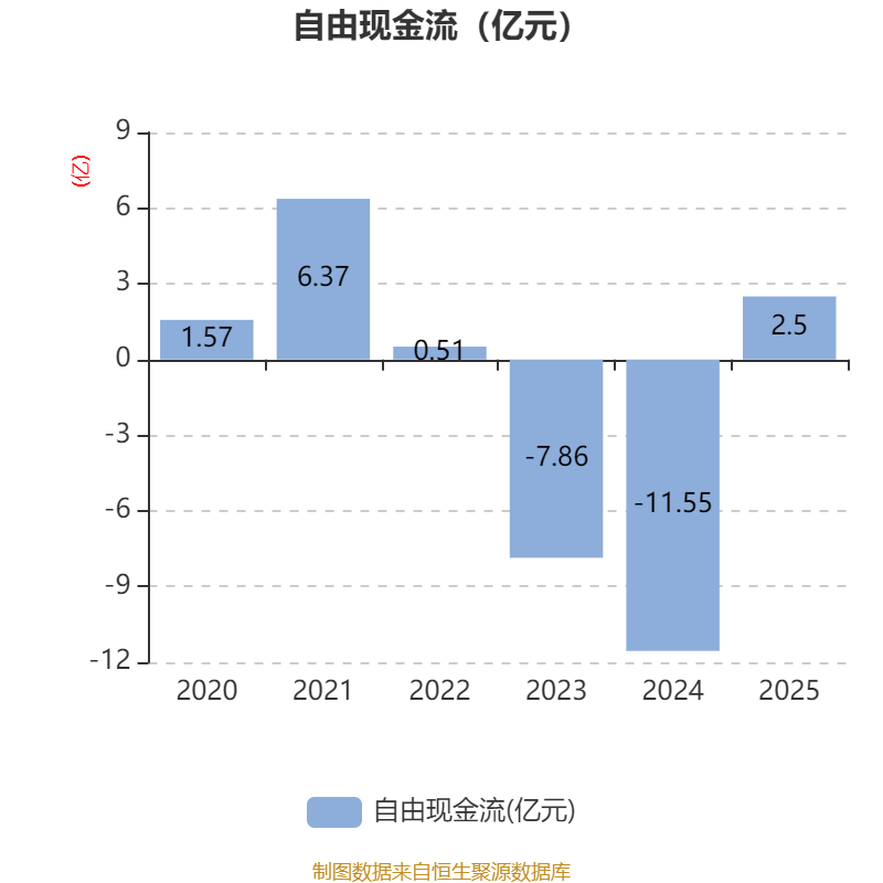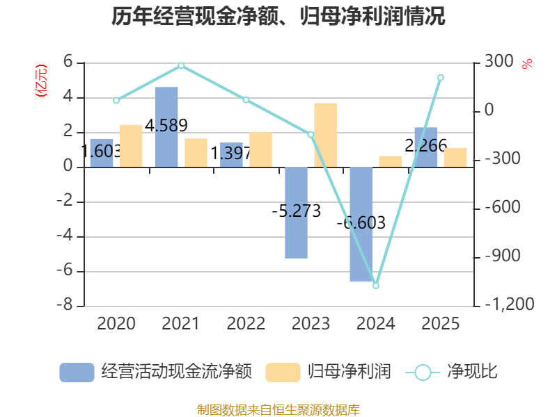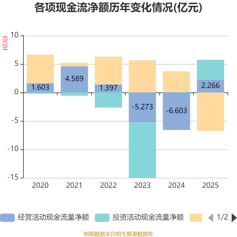 截至2025年,公司经营活动现金流净额为2.27亿元,同比增加8.87亿元;筹资活动现金流净额-6.78亿元,同比减少10.43亿元;投资活动现金流净额3.47亿元,上年同期为630.19万元。