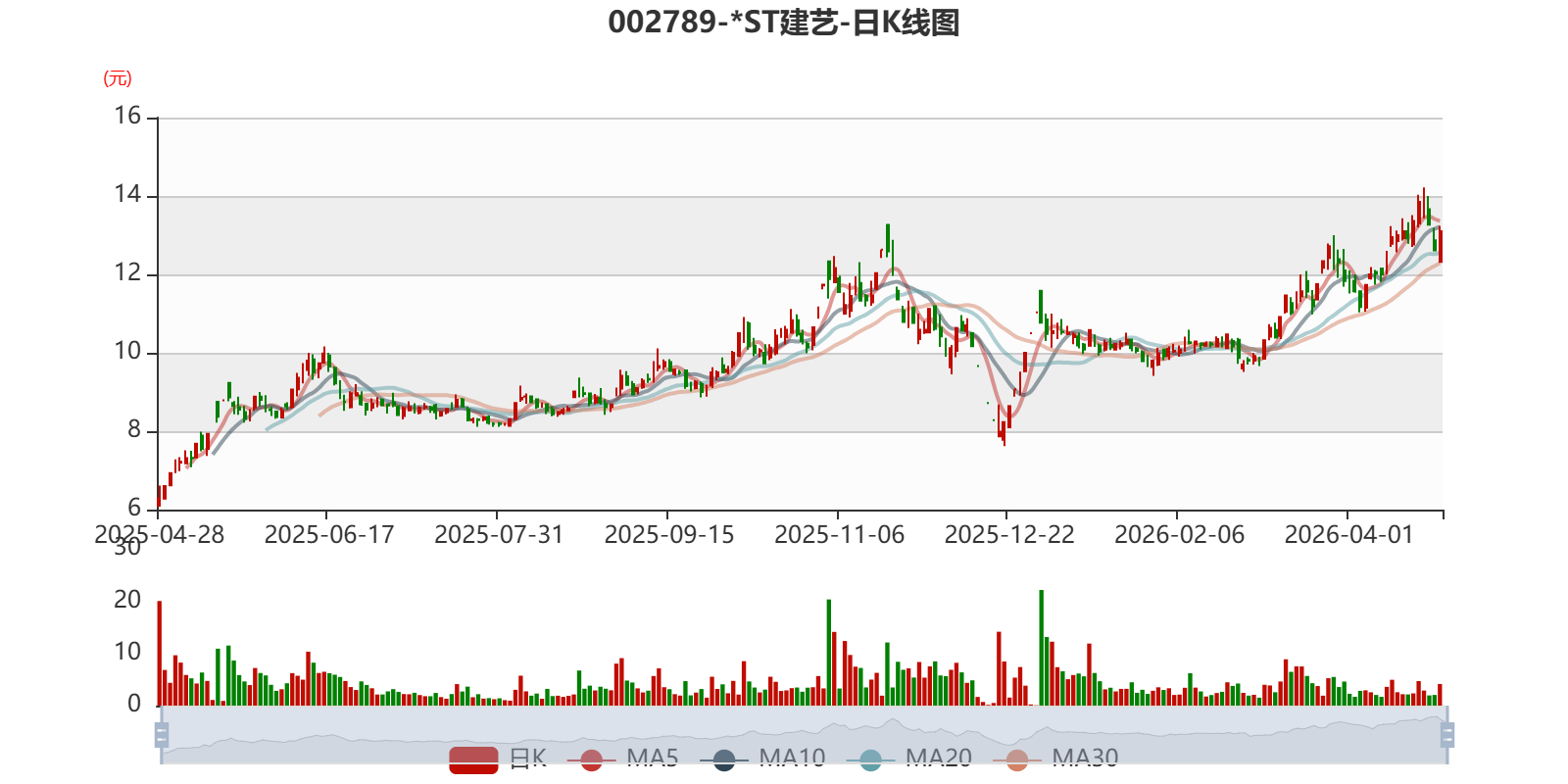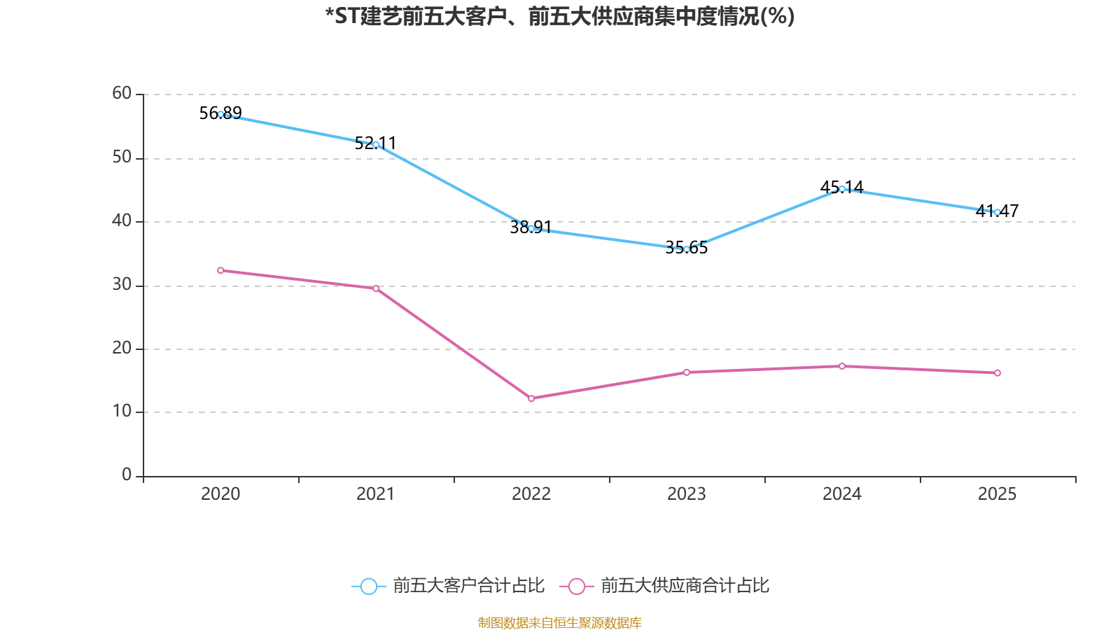 中证智能财讯 *ST建艺(002789)4月28日披露2025年年度报告。2025年,公司实现营业总收入35.93亿元,同比下降42.51%;归母净利润亏损7.52亿元,上年同期亏损8.29亿元;扣非净利润亏损7.69亿元,上年同期亏损8.59亿元;经营活动产生的现金流量净额为-3.19亿元,上年同期为8293.35万元;报告期内,*ST建艺基本每股收益为-4.71元。