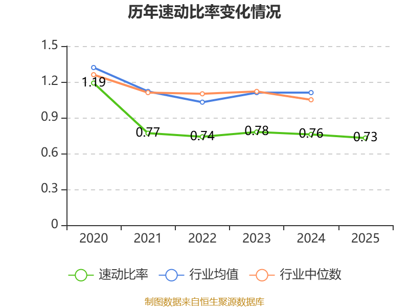 2025年,公司流动比率为0.74,速动比率为0.73。