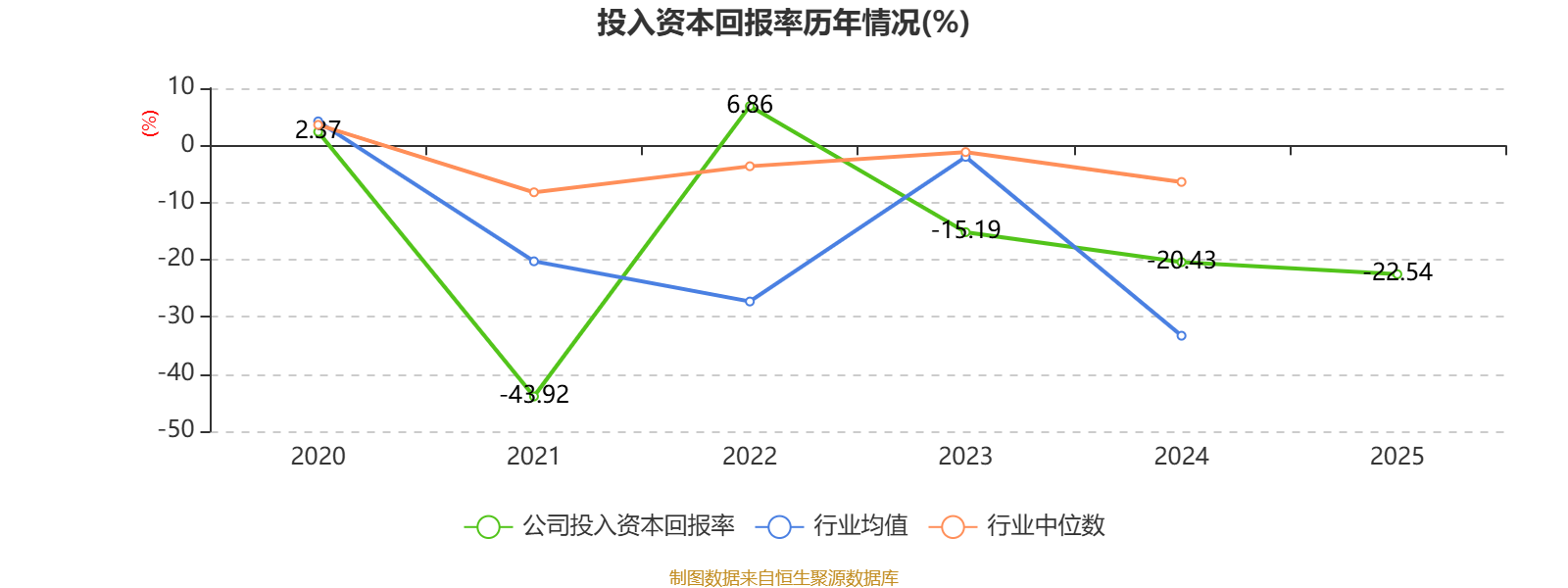 公司2025年投入资本回报率为-22.54%,较上年同期下降2.11个百分点。