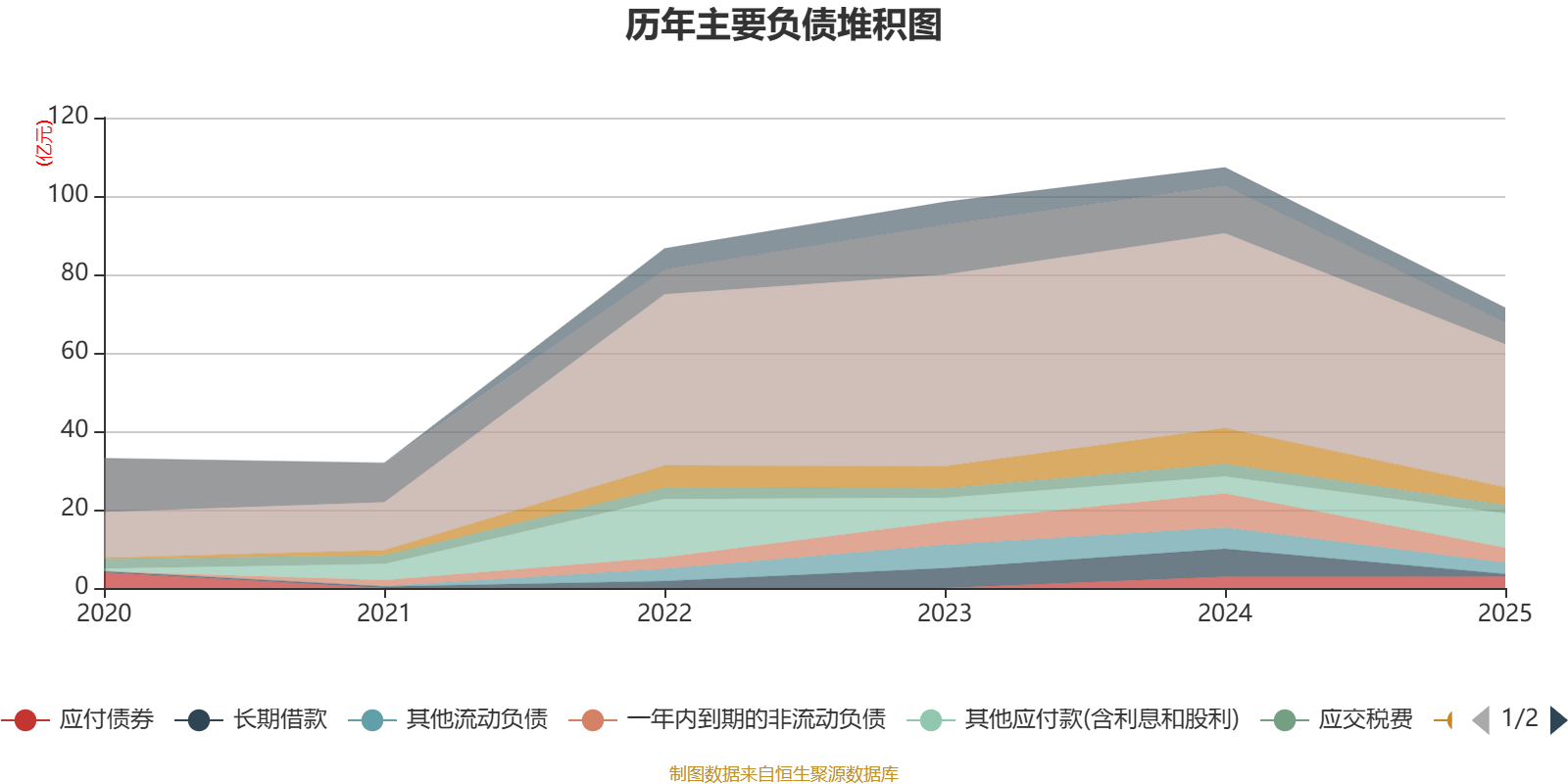 负债重大变化方面,截至2025年末,公司其他应付款(含利息和股利)较上年末增加102.23%,占公司总资产比重上升7.29个百分点;长期借款较上年末减少89.96%,占公司总资产比重下降6.03个百分点;短期借款较上年末减少54.34%,占公司总资产比重下降4.63个百分点;一年内到期的非流动负债较上年末减少56.23%,占公司总资产比重下降3.52个百分点。