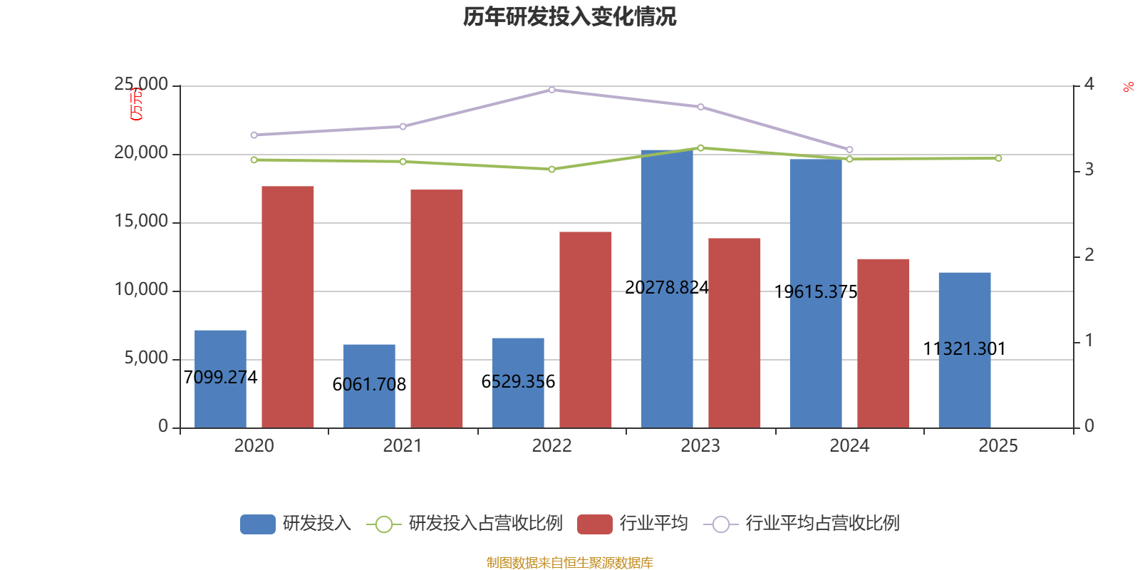2025年全年,公司研发投入金额为1.13亿元,同比下降42.28%;研发投入占营业收入比例为3.15%,相比上年同期上升0.01个百分点。此外,公司全年研发投入资本化率为0%。