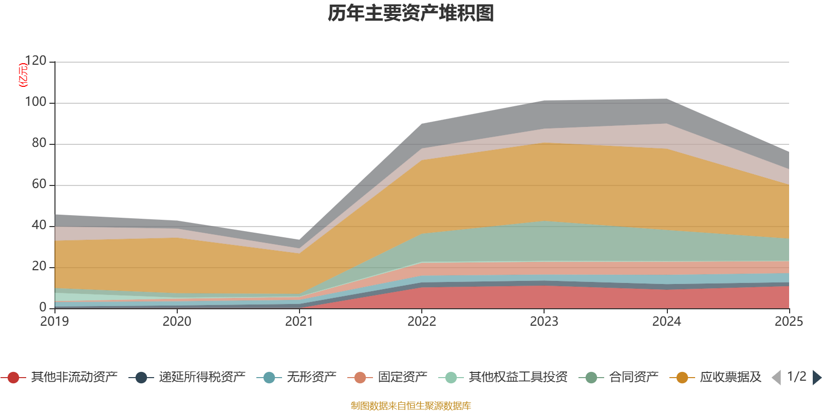 资产重大变化方面,截至2025年末,公司其他非流动资产较上年末增加19.65%,占公司总资产比重上升5.34个百分点;应收票据及应收账款较上年末减少33.57%,占公司总资产比重下降4.24个百分点;货币资金较上年末减少38.29%,占公司总资产比重下降2.08个百分点;无形资产较上年末减少3%,占公司总资产比重上升1.35个百分点。