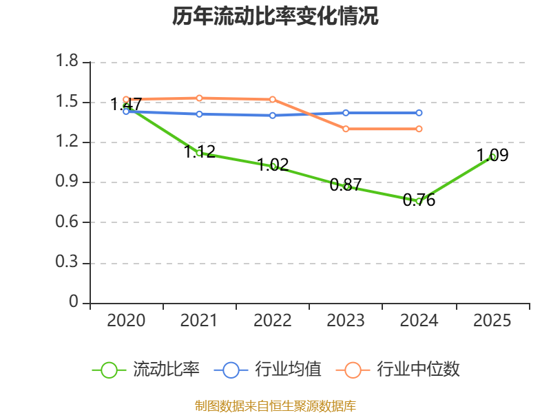 2025年,公司流动比率为1.09,速动比率为0.96。
