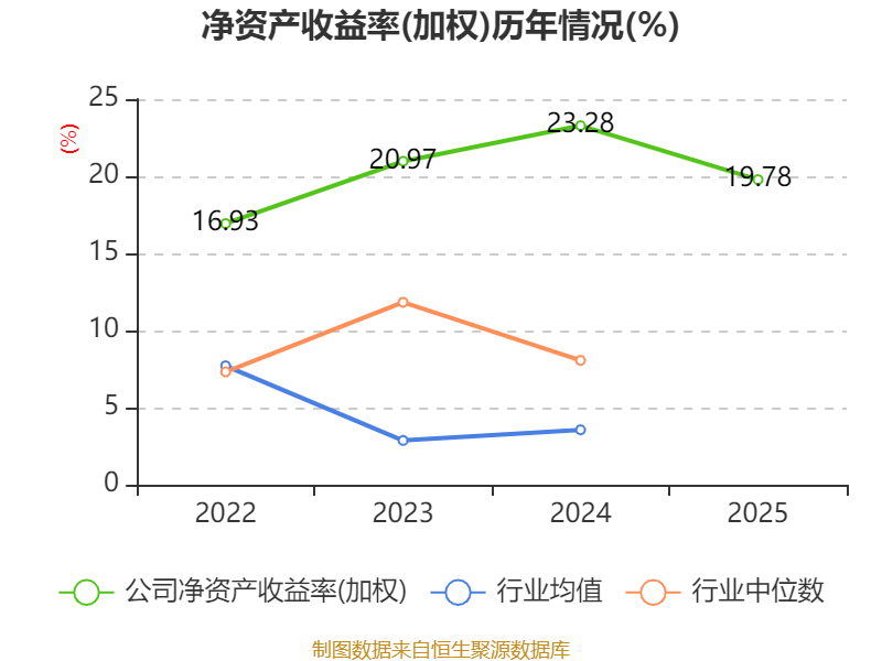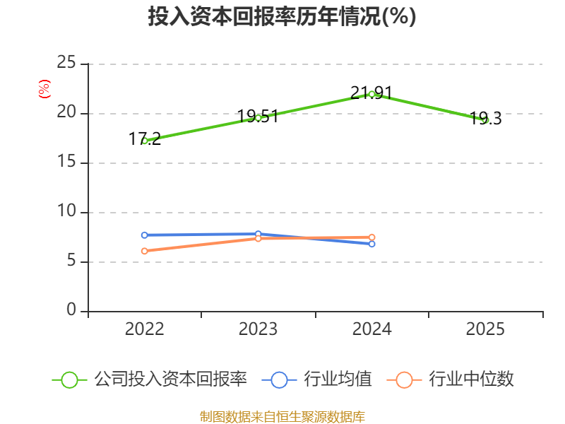 数据显示,2025年公司加权平均净资产收益率为19.78%,较上年同期下降3.5个百分点。公司2025年投入资本回报率为19.3%,较上年同期下降2.61个百分点。