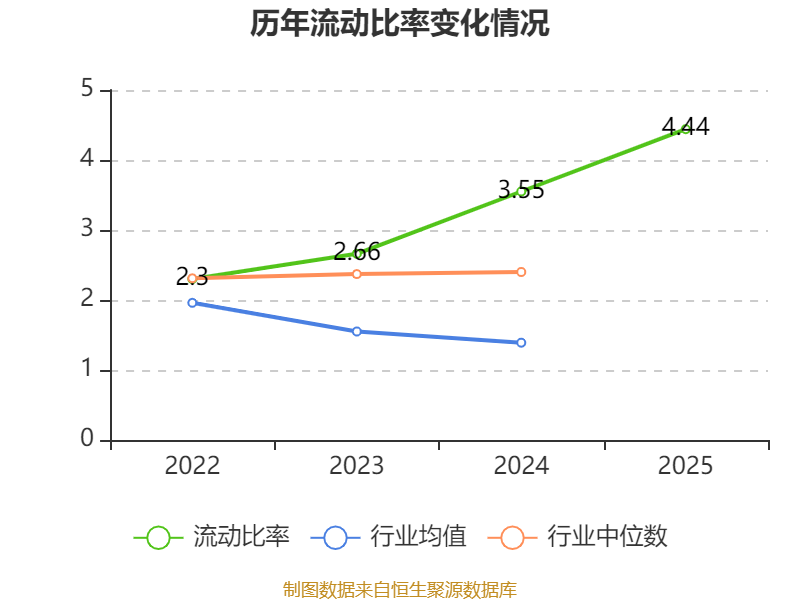 2025年,公司流动比率为4.44,速动比率为3.8。